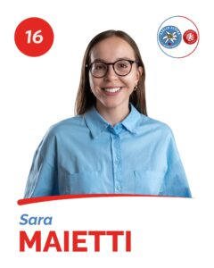 «Sono Sara, ho 23 anni e sono una studentessa all’ultimo anno di giurisprudenza. Ho deciso di candidarmi perché ho spesso l’impressione che la politica parli di noi giovani senza conoscerci davvero: ecco perché mi piacerebbe portare la nostra visione in Comune.»